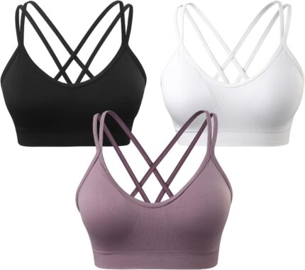 VEQKING Women’s Cross Back Sports Bra Padded Strap…