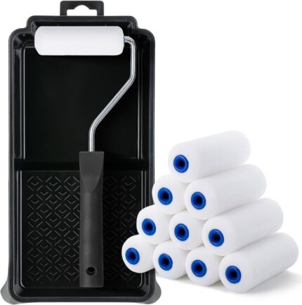 Price: (as of – Details) Bates 4-inch foam paint roller set includes 12 pieces: 1 plastic paint tray, 1 roller