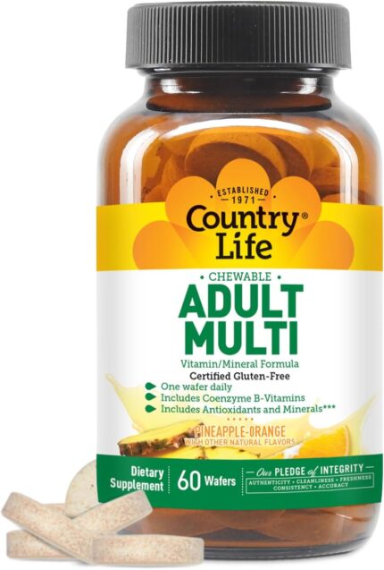 Price: (as of – Details) Country Life Adult Chewable Multivitamin offers essential vitamins, minerals, and antioxidants like vitamin C, E,