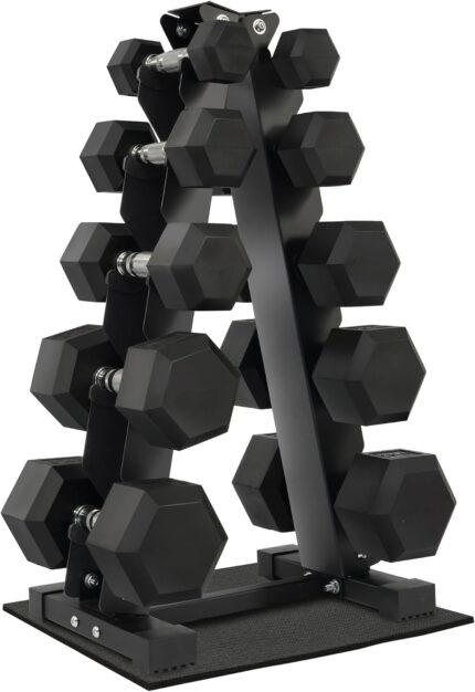 Fitvids Rubber Encased Hex Dumbbell Set with Rack,…