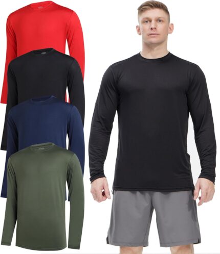 4 Pack Long Sleeve Shirts for Men Quick-Drying Moi…