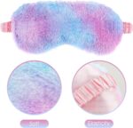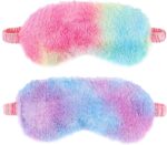 Product Summary: 2 Pack Plush Sleeping Eye Mask Soft Plush Eye Mask Fuffy Eye Cover Comfortable Sleep Mask Blindfold Rainbow Faux Fur Eye Shade for Women, Men and Kids Travel Nap Sleeping