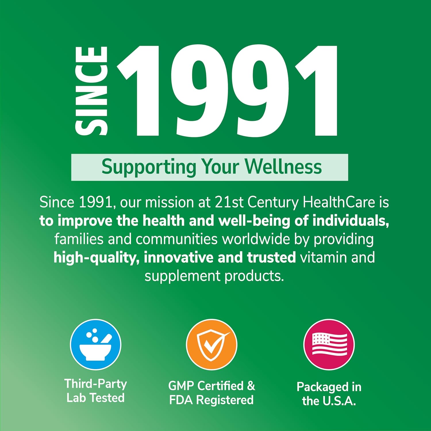 For over 30 years, 21ST Century Vitamins has provided trusted vitamins and supplements by upholding the highest standards of quality in every product we offer. From sourcing the finest ingredients to rigorous testing and production processes, we ensure that every product meets our stringent quality benchmarks. We are here to support your wellness every step of the way.