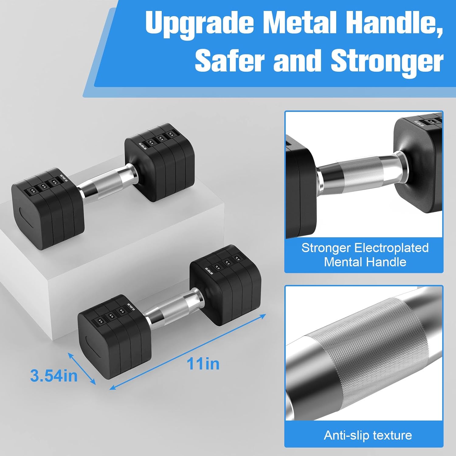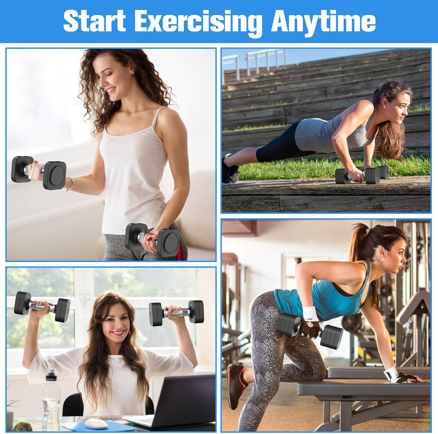 【Square Weight Block】Our adjustable dumbbell set has a square shape, allowing you can find more usage of the weight set such as push-ups. In addition, the multiweight dumbbell set will not roll around for safety.