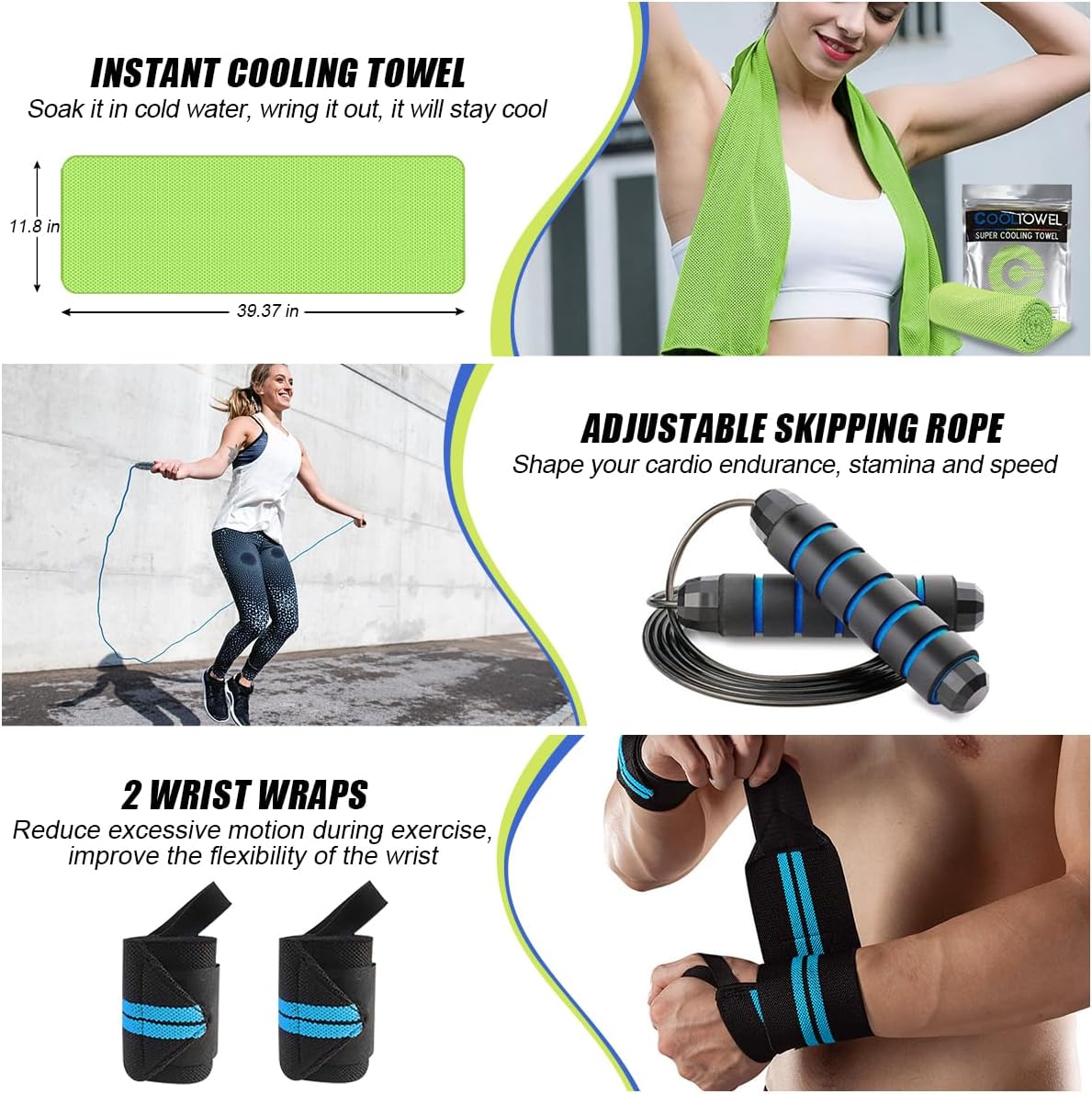 All-In-One Resistance Bands Set: This resistance band set includes 5 Color coded resistance tube bands, 5 sturdy resistance loop bands, 2 double sided core sliders, 2 handles, 2 ankle straps, 1 door anchor, 1 instant cooling towel, 2 Wrist Wraps, 2 carrying bag. All of them are well tested to ensure qualified standard.