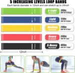 Sturdy Loop Resistance Bands: The bands are made of 100% natural latex & free of TPE and come in 5 resistance levels: Green X-Light, Blue Light, Yellow Medium, Red Heavy, Black X-Heavy. Ideal for improving strength and mobility – 【used for integrated seamlessly with every popular workout program including Yoga, Pilates】 – 【Perfect for squats, strengthening leg muscles, knee thrusts, lateral shuffles.】