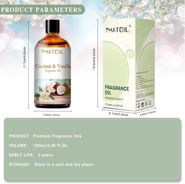 Coconut vanilla perfume-inspired fragrance oil is for external use only. Please do not expose it to sunlight after use. Store in a cool and dry place. If pregnant or nursing, consult your doctor before use.