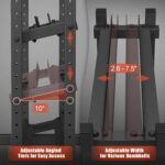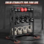 The shelves are plenty wide for many weights. I currently have 22 dumbbells ranging from 5 up to 80 lbs. The top shelf has 5 – 20 lbs in 2 1/2 lb increments. The center shelf has 25 – 40 lbs in 5 lb increments. The bottom has 45 – 60 lbs in 5 lb increments. On the floor under the bottom shelf has 65 – 80 lbs in 5 lb increments. None of those shelves look at all cramped, and the top two had room for several duplicate weights. I no longer need to waste time looking for a specific dumbbell, as they're now very easy to find.