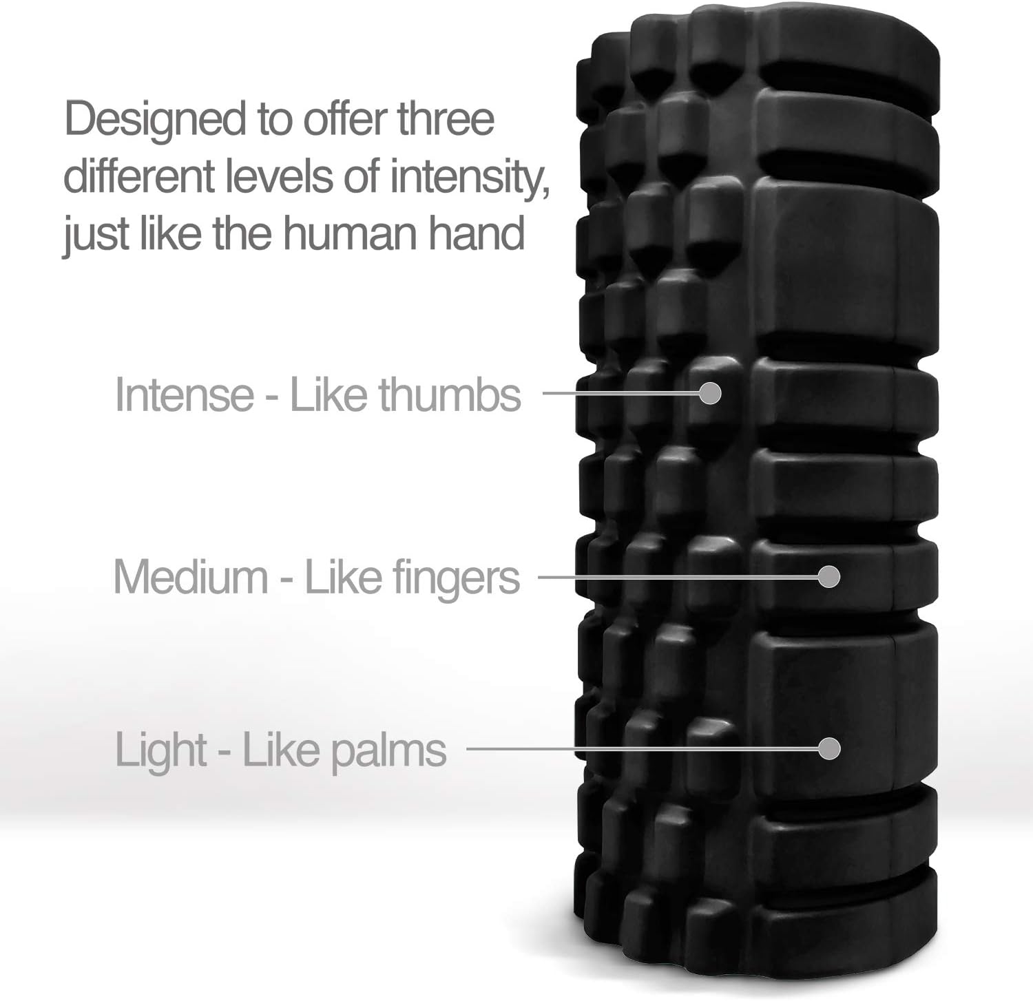3 UNIQUE ZONES FOR PRECISION: Three unique textures replicate the hands, fingers, and thumbs of a massage therapist. Unlike single-pattern rollers, it targets specific muscles with customized pressure for optimal relief.
