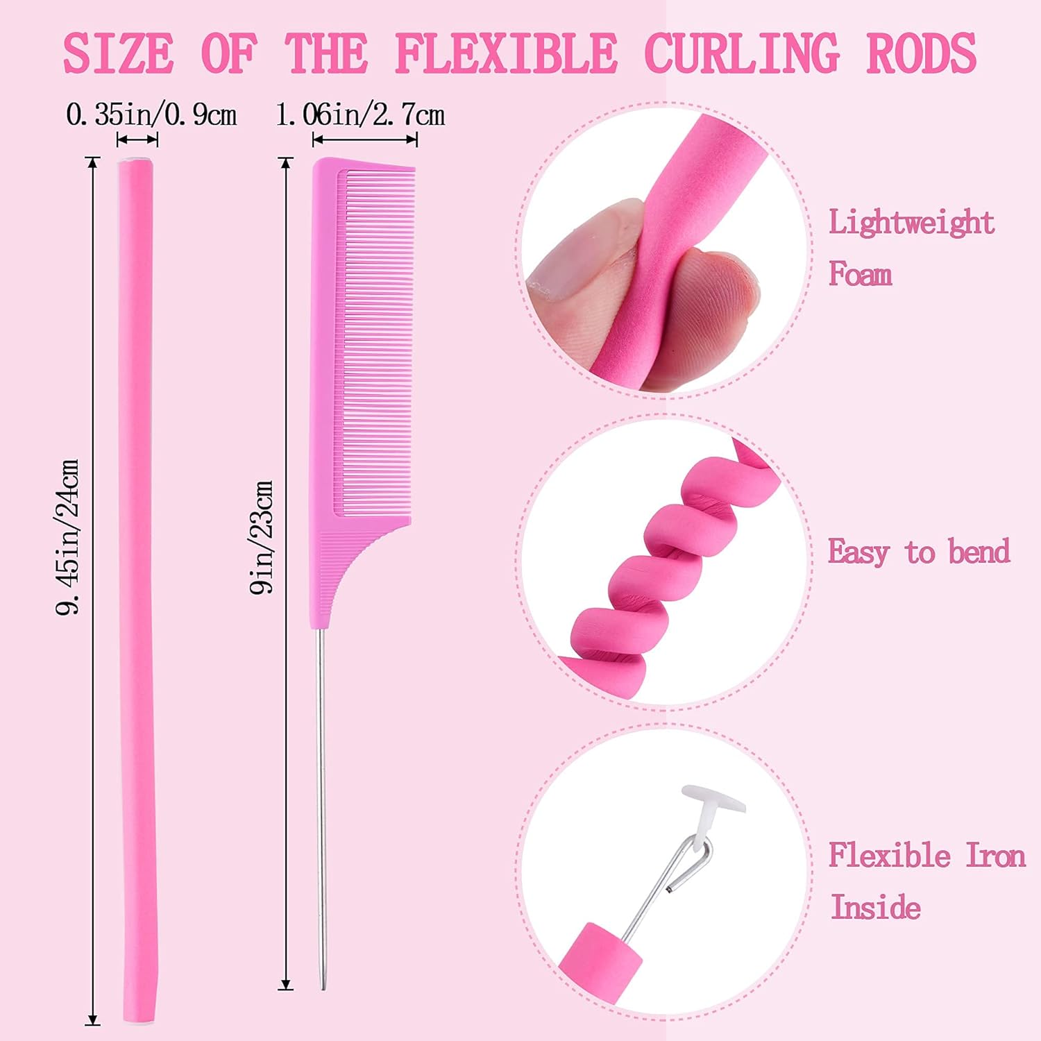 Hair Rollers for Long Hair Set: hair curlers rollers, You will get 30 pieces twist foam hair rollers in pink color, come with 1 piece pink steel pintail comb, totally 31 pieces. Sufficient quantity to satisfy your daily demands, nice combinations for you to DIY your favorite curly hair. You can also share this curling rods with your family and friends, it’s a surprise gift for Women’s Day, Mother’s Day, Birthday, and Wedding Anniversary.