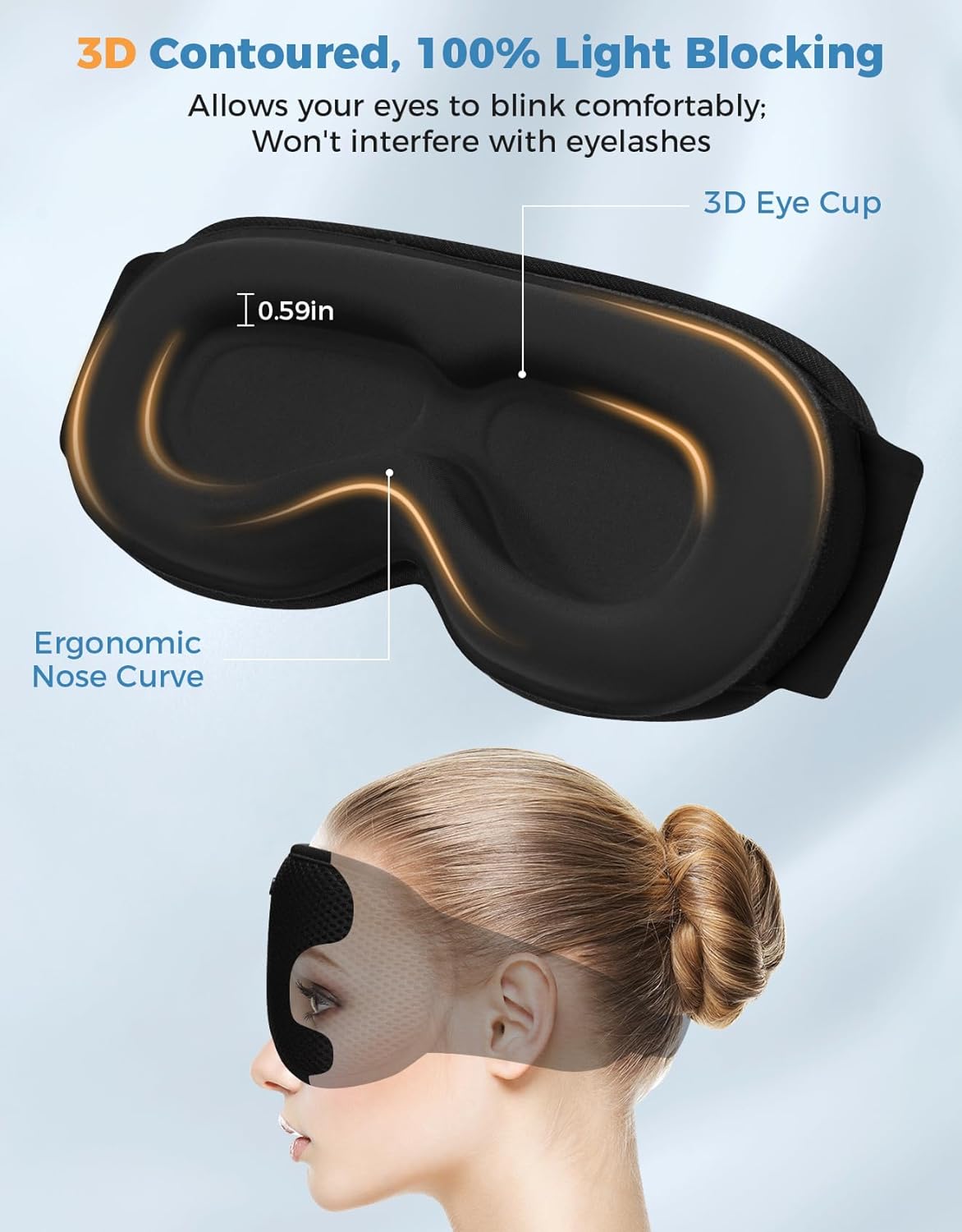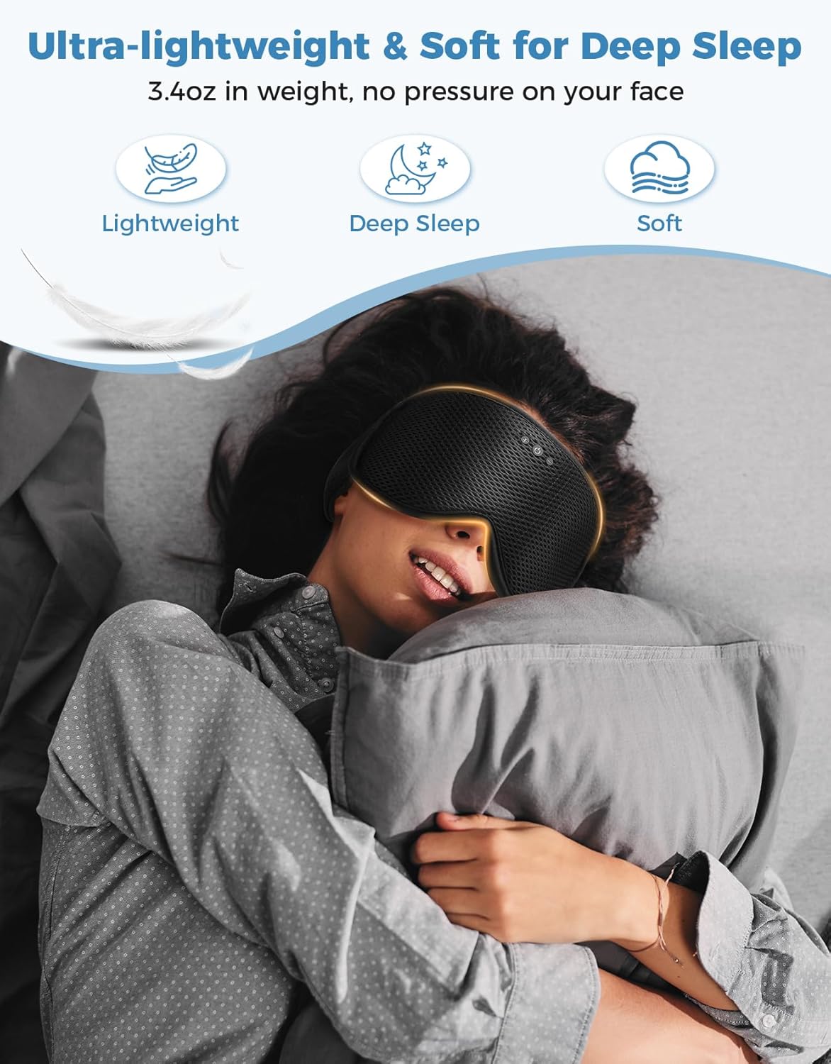 Breathable Earpads without Pressure: The earpads of the mask feature a lightweight, breathable mesh design, allowing you to enjoy music without putting pressure on your ears or causing sweating, ensuring a comfortable sleep experience all night.