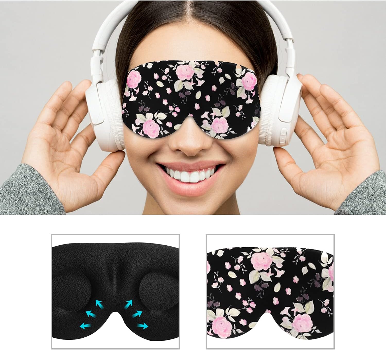 ❤[Elastic headband]: The sleep eye mask uses a comfortable, adjustable and soft headband, which will not entangle your hair or pillows, and can comfortably surround your head, suitable for long-term wear. Let you form the most comfortable fit in any sleeping position.