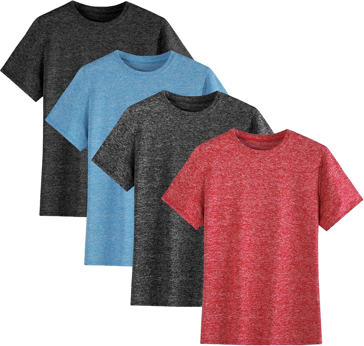 4 Pack Youth Boys Kids T Shirts Quick Dry Short Sl…