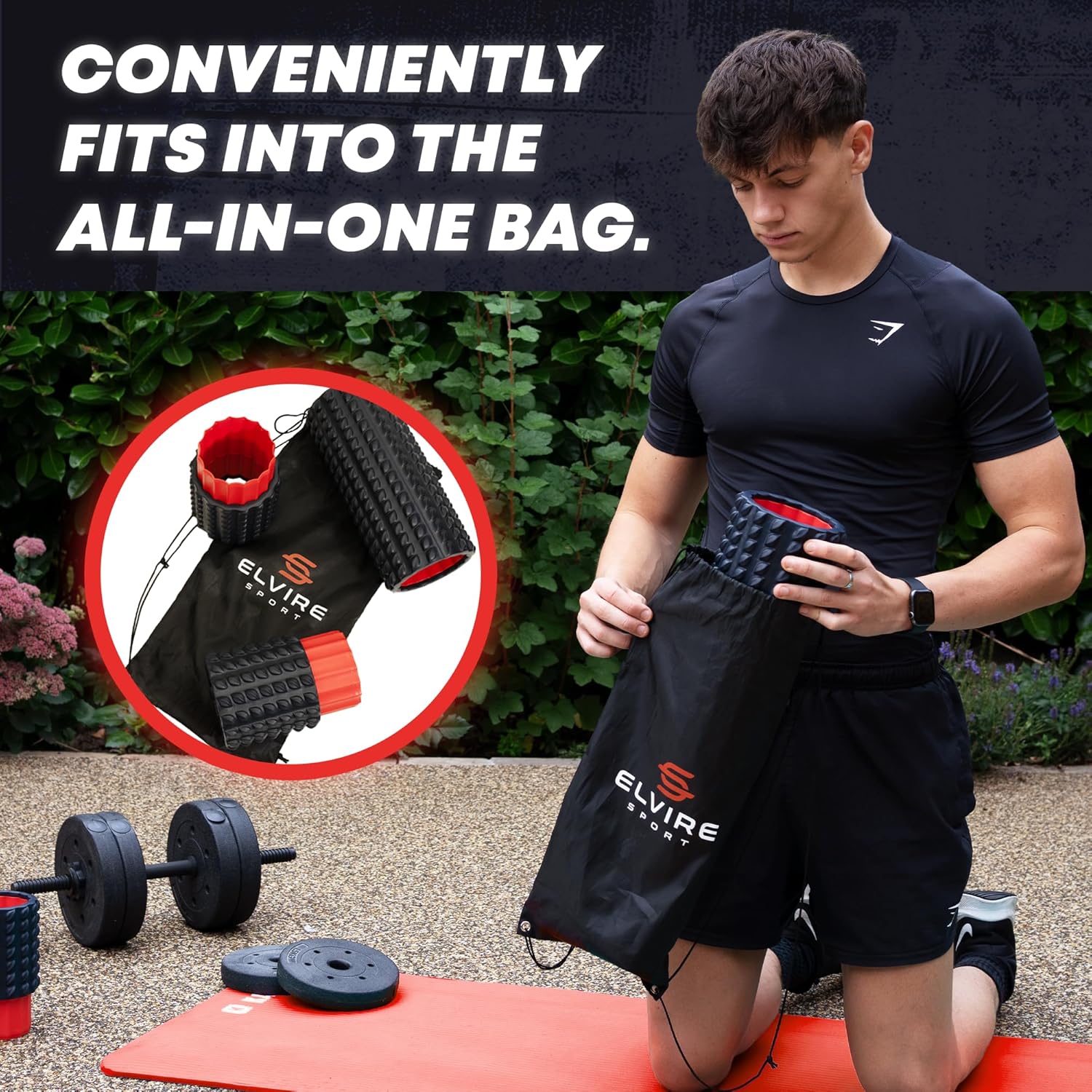 Easy Storage: Don’t let your long foam roller be an obstacle in the household, simply pull both sides to halve it in size then store it away using the large foam roller bag that’s included.
