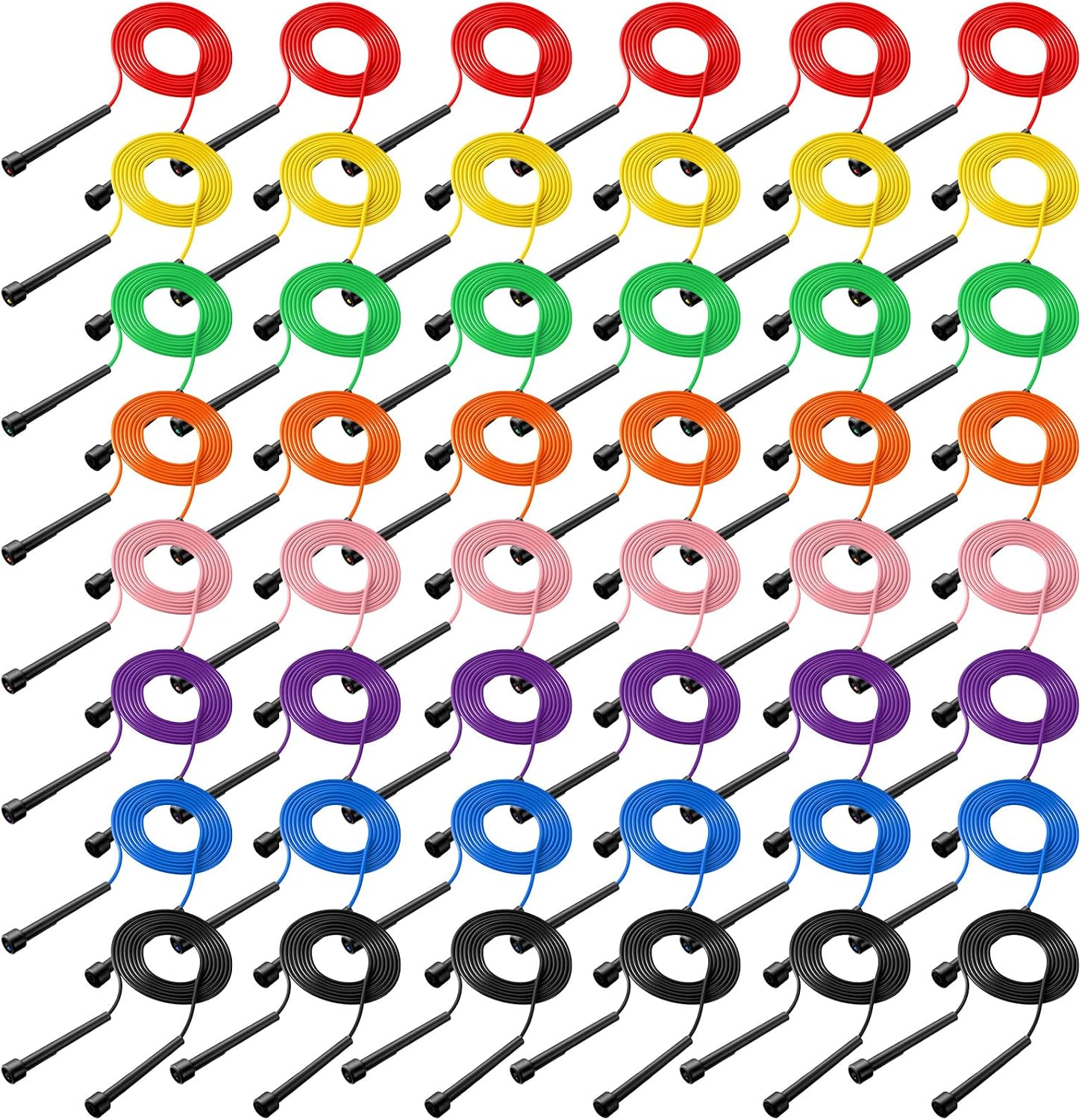Bulk Pack for Teams: the package includes 72 PVC jump ropes, designed with black handles and rope in 8 assorted colors, including black, yellow, green, orange, pink, red, blue, and purple, 9 pieces for each color, ideal for team sports or group activities, sufficient for your needs