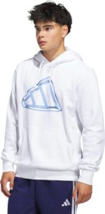 This men’s adidas hoodie balances bold style and practical features with its oversized logo graphic and functional design. The regular fit offers a shape that’s neither too tight nor too loose, while the drawcord-adjustable hood allows you to personalize coverage. A kangaroo pocket provides convenient storage for small essentials.