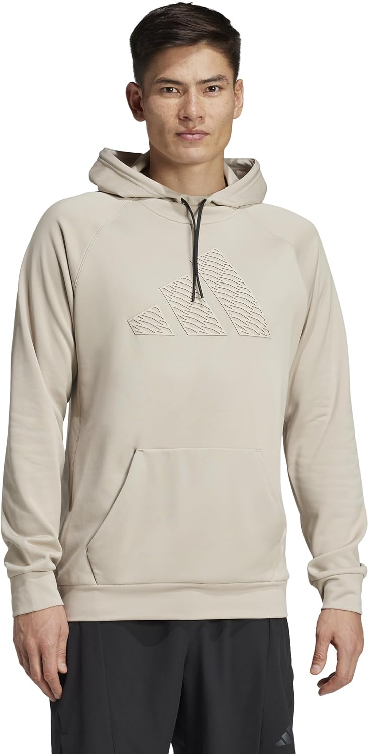 Layer this men’s adidas hooded sweatshirt over your favorite training look for warmth in the gym or on the street. The polyester fleece build combines with a drawcord hood and a kangaroo pocket to keep you warm. A large tonal 3 Bar logo on the chest provides the finishing touch.