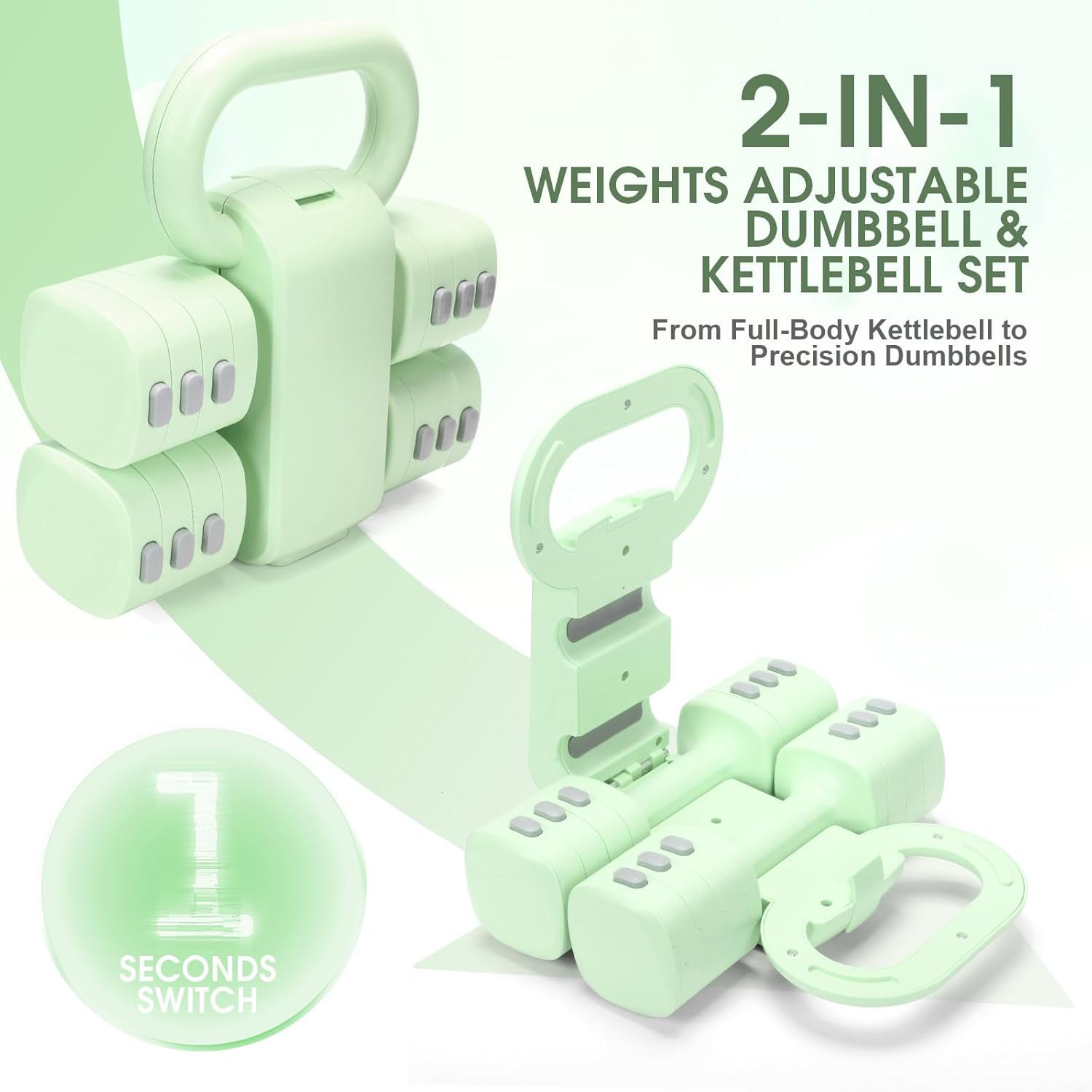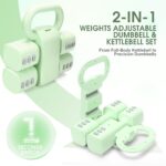【Multi-Use Convertible System】Easily switch between a full-size kettlebell for full-body training and two adjustable dumbbells for focused workouts. The smart interlocking system makes conversion quick and secure—no extra tools or loose parts needed.