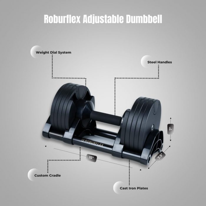 ROBURFLEX Adjustable Dumbbell (Single) for Workout Strength Training Fitness Home Gym