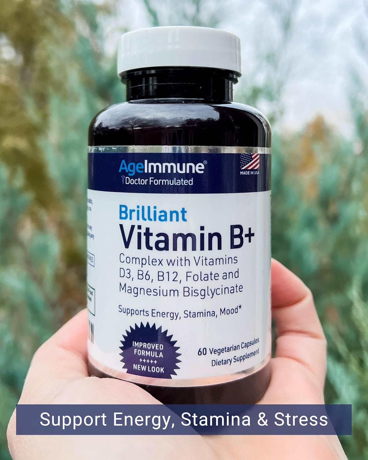 NEURO and BRAIN support with B6 as Pyridoxal-5-Phosphate 20mg, B12 as Methylcobalamin 1000mcg, D3 1000IU, Albion Magnesium Bisglycinate 26mg, Folate 600mcg DFE. Support Stamina, Mood, Energy production.