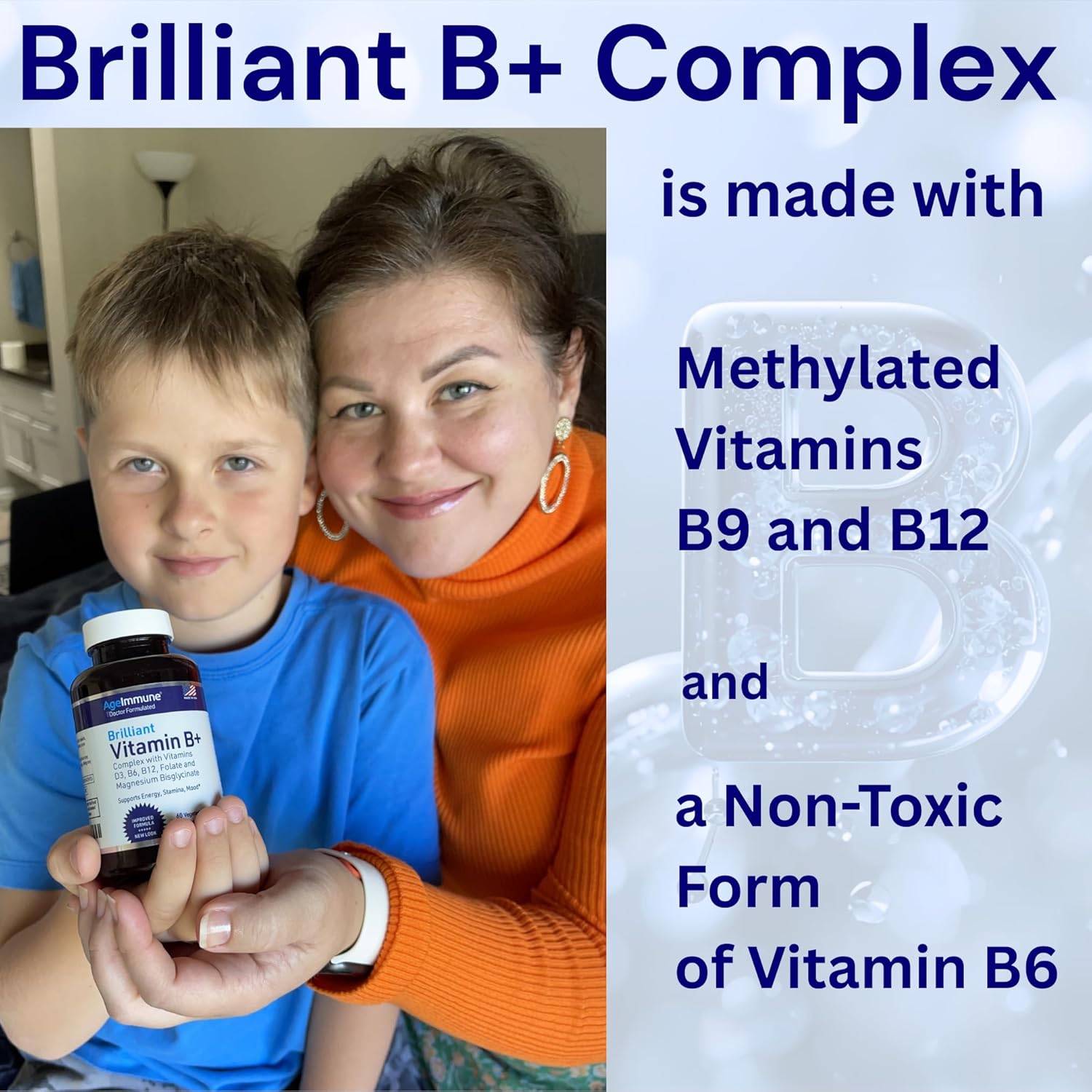 With FOLATE (Metafolin L-5-MTHF), not Folic Acid, for MTHFR gene expression, cognitive function support and best B Vitamins absorption.