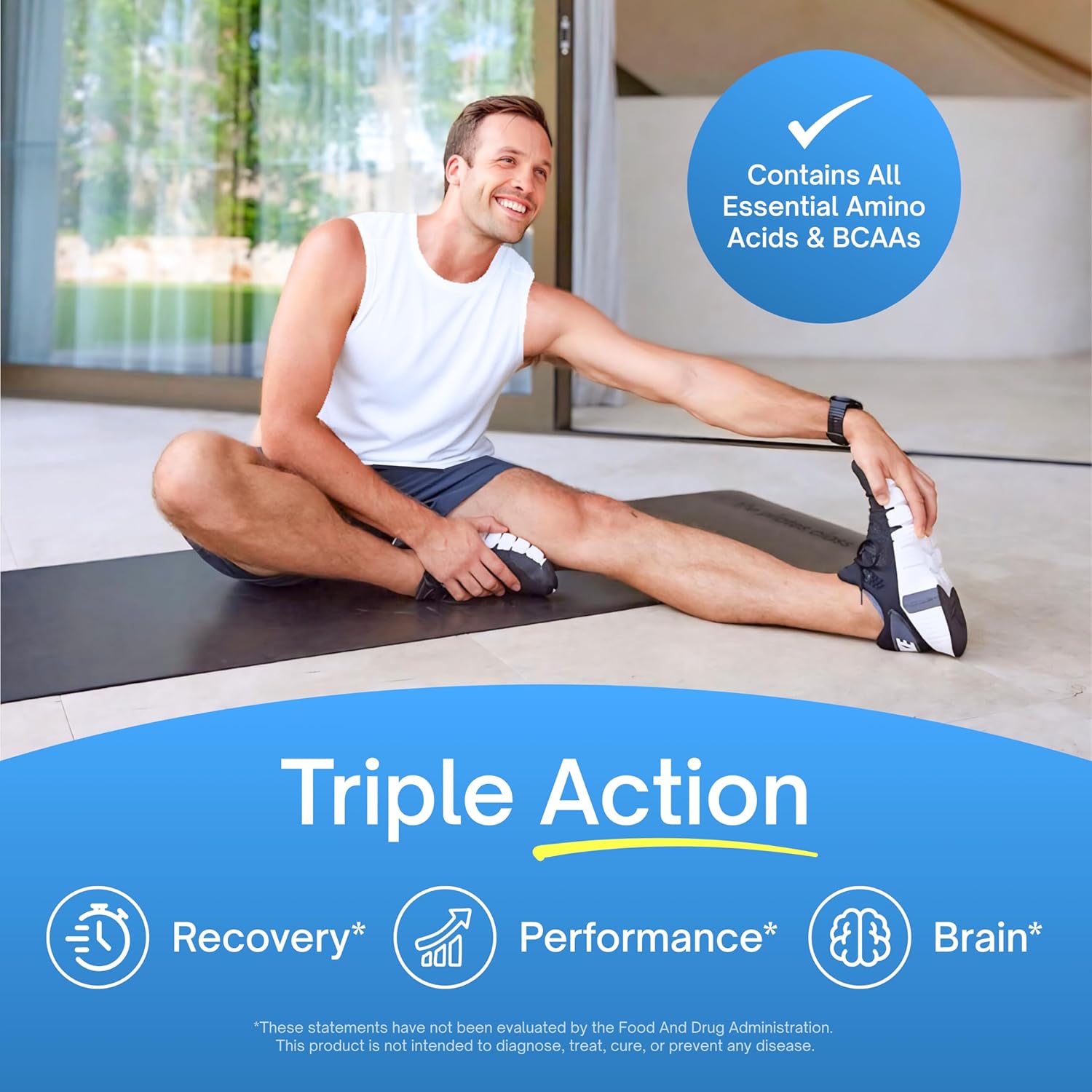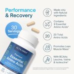 SUPPORTS MUSCLE RECOVERY AND GROWTH: Our powerful formula features a complete blend of all 9 essential amino acids ( EAA ), including all three branched-chain amino acids ( BCAAs ), to help support muscle growth, recovery, soreness, overall muscle health, energy, and exercise endurance
