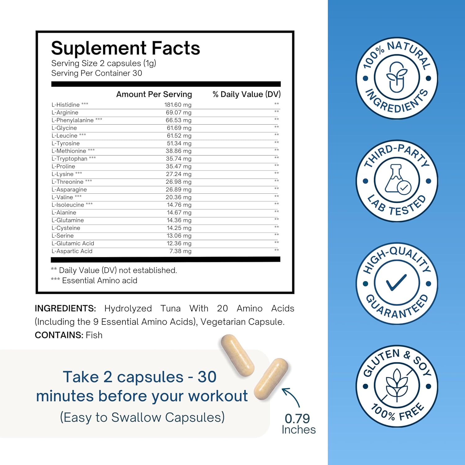 AMINO ACIDS SUPPLEMENTS FOR MEN AND WOMEN: Our amino acids supplement for women and men contains 60 easy to swallow capsules.It directly supports protein synthesis at the genetic level, promoting genetic health and optimal performance