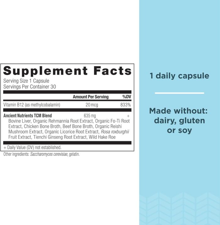 ANCIENT NUTRIENTS TCM BLEND- Our Traditional Chinese Method blend is based off of a Chinese tradition using herbs that has been around for more than 2,000 years.This blend contains Fo-Ti Extract which is a traditional herb known to support overall health. We also added Bovine liver and Wild Hake Roe, which are considered some of the most nutrient-dense foods on this planet, collagen-rich bone broth, and Rehmannia extract, a tonic herb.