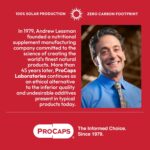 Ethical & eco-friendly. zero carbon footprint – Uniquely committed to your health and the health of the planet, ProCaps’ facilities are 100% Solar Powered with a Zero Carbon Footprint and an LEED Gold green building status. All ProCaps bottles are made from 100% recyclable post-consumer resin. Plus, Andrew Lessman and ProCaps are the largest donor of prenatal vitamins in the world (over 2 billion capsules donated to date). ProCaps, the Informed Choice for Nutritional Supplements.