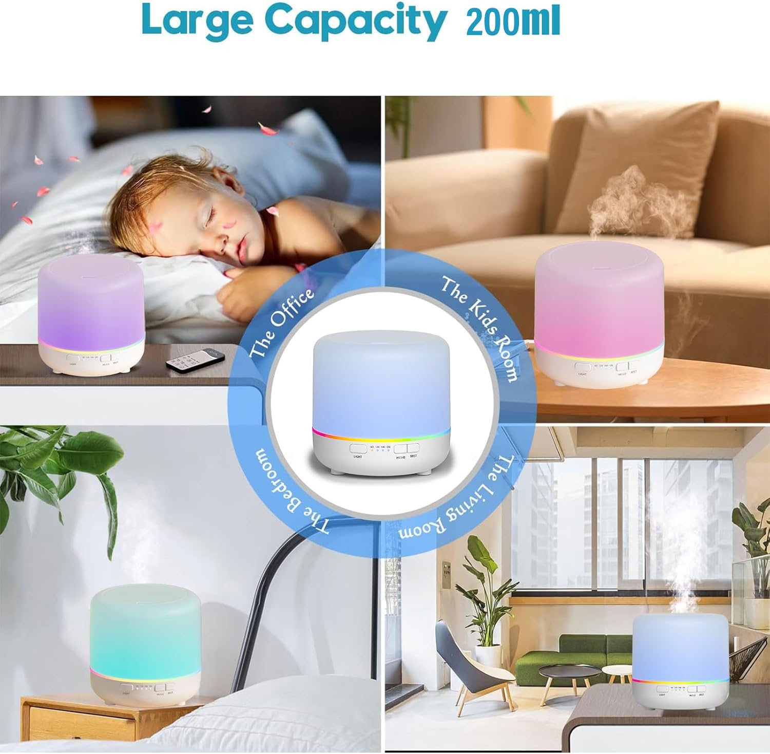 â–¶200ML Multifunctional Portable Diffuser – Can be used as an aromatherapy diffuser, humidifier or night light that you can take with you on your travels. Available in a variety of colors and rotating colors to create a great ambiance for your bedroom at night. Simple and user-friendly operation – the diffuser automatically shuts off when the water/oil level is too low or when the time is up, which ensures safety and peace of mind.
