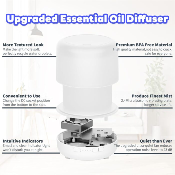 â–¶ Perfect for releasing your fatigue – Put essential oils inside, this essential oil diffuser fills the space with a lovely scent that can uplift the spirit and relieve the stress of a tense and exhausting day, perfect for burying stubborn smoking and pet odors and helping you get a peaceful night’s sleep with the aromatic scent.