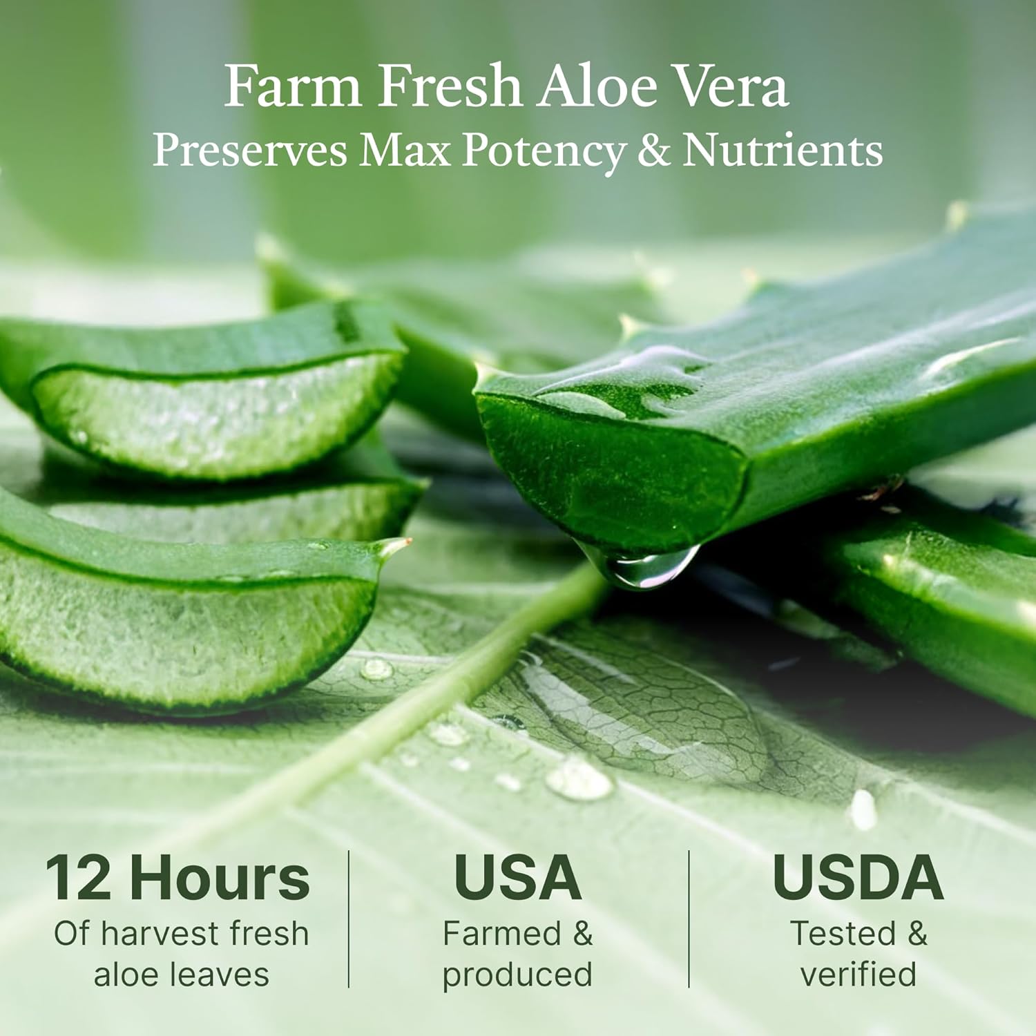 Farm-Fresh Aloe for Maximum Potency: We take pride in the freshness of our aloe vera gel, which is harvested and filled within just 12 hours. This rapid farm-to-fill process ensures that the aloe vera retains its natural enzymes, vitamins, and minerals, delivering unparalleled potency and effectiveness straight to your skin. Experience the difference that truly fresh aloe vera can make in your skincare routine.