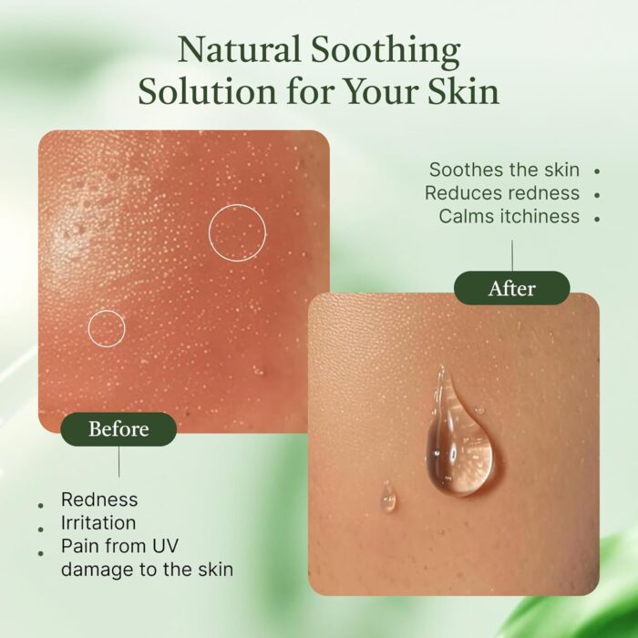 Cooling and Soothing Relief for Skin Irritations: Our aloe vera gel is your natural ally for pain relief and skin recovery. Infused with the cooling properties of aloe, it provides instant relief from sunburns, minor burns, and skin irritations. The soothing formula calms itching and discomfort, making it an essential addition to your first aid kit. Enjoy the peace of mind that comes with knowing you have a reliable, natural remedy for life’s little skin emergencies.