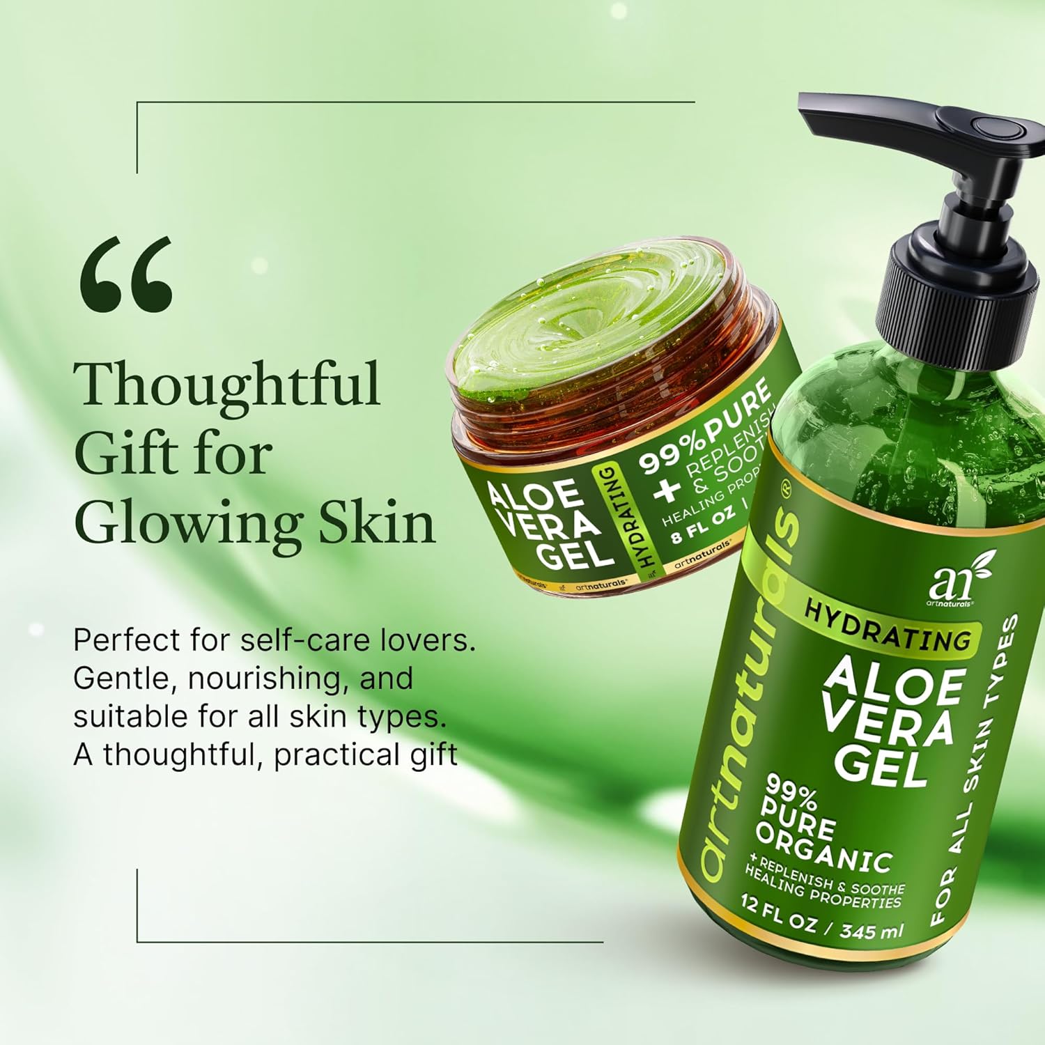 Ultimate Dual Pack for Comprehensive Care: Our aloe vera gel set includes a 12 oz bottle with a convenient pump for effortless daily use, alongside an 8 oz jar that’s perfect for more targeted applications or travel. Whether you’re replenishing your skin at home or on the go, this duo pack provides the versatility and convenience you need to keep your skin nourished and hydrated.