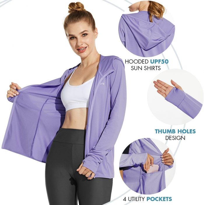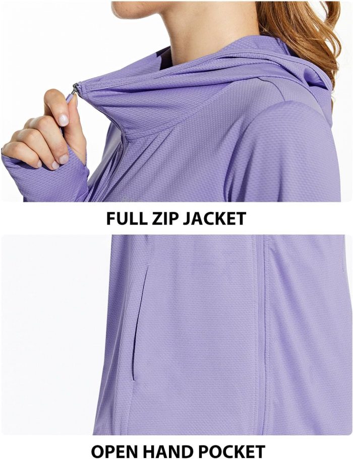 Customers appreciate the lightweight and comfortable jacket that provides good sun protection. They find it stylish with a nice style and deep hood. The soft fabric is comfortable even in hot conditions. Customers are pleased with the climate and quality of the jacket. However, some customers have mixed opinions on the fit and fabric thickness.