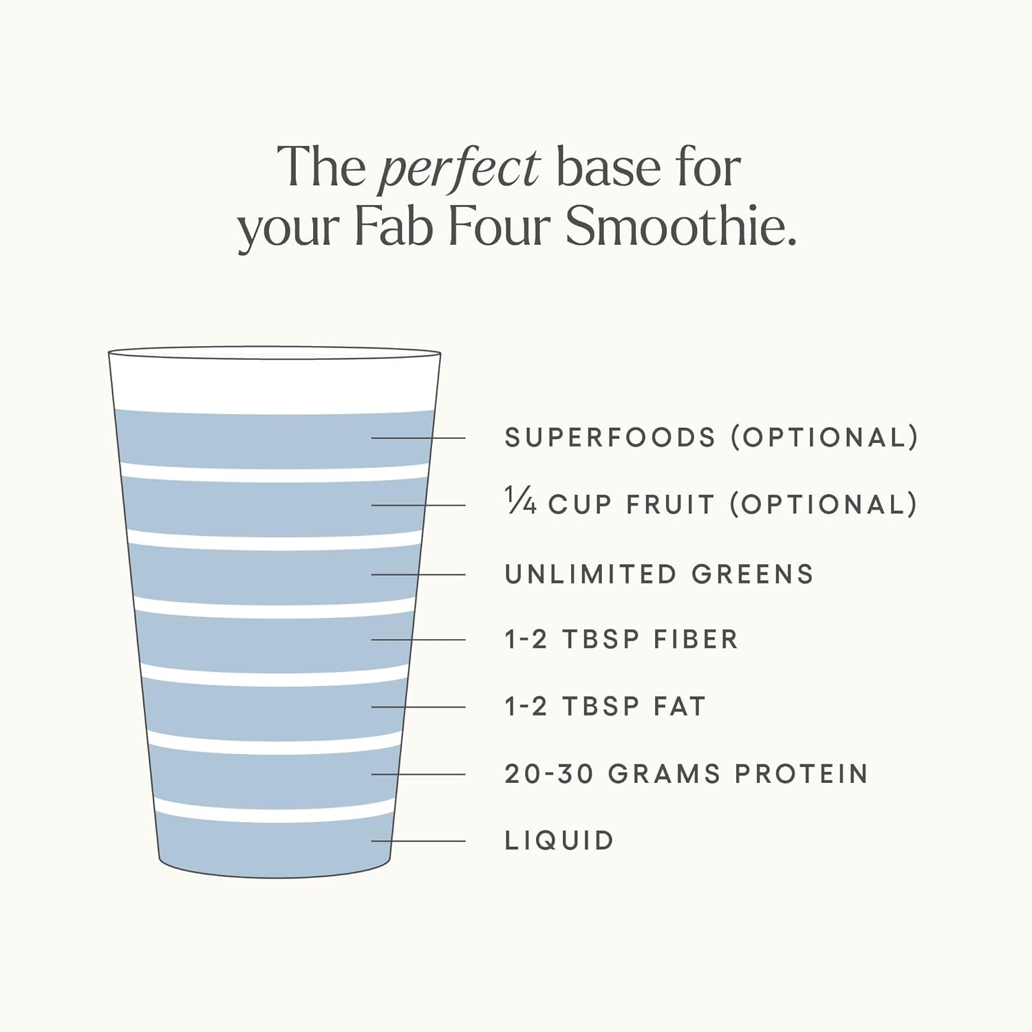 PERFECT FOR A FAB FOUR SMOOTHIE. Incorporate this Grass-Fed Beef Protein Powder into your Fab Four Smoothies. Make a satisfying smoothie and get all the protein you need with 1 scoop of powder plus fat, fiber & greens
