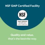 NSF GMP CERTIFIED FACILITY: Bestvite’s facility is NSF/ANSI 455-2 Dietary Supplements Good Manufacturing Practice (GMP) certified. Earning GMP certification from NSF verifies that a manufacturing facility has the proper methods, equipment, facilities, and controls in place to produce dietary supplement products.