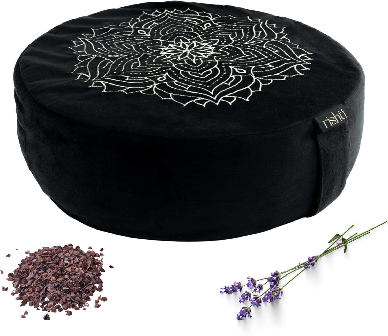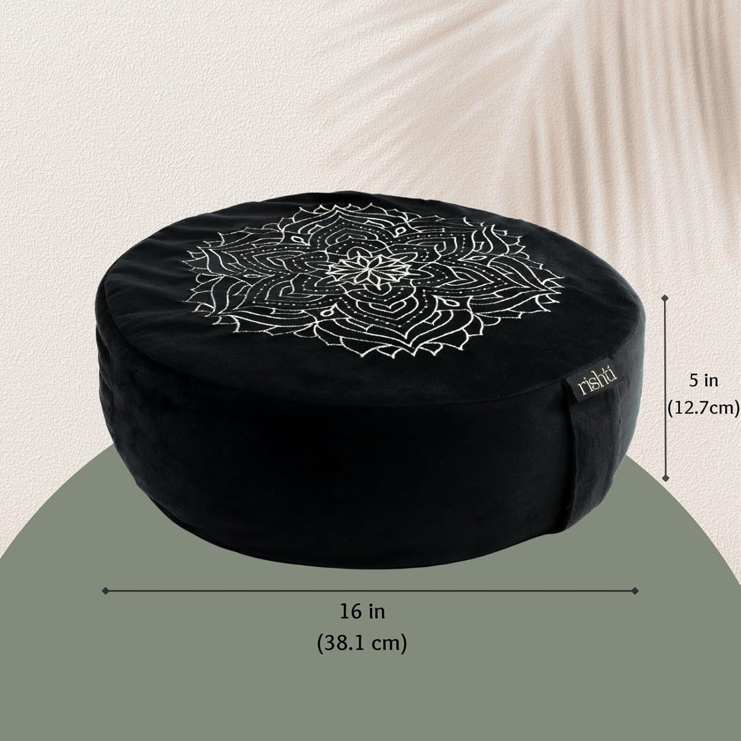 Premium Make and Feel – Experience comfort and tranquility with our black velvet meditation pillow. It is delicately embroidered, with a hidden zipper and comes with a lavender sachet to enhance your spiritual journey.