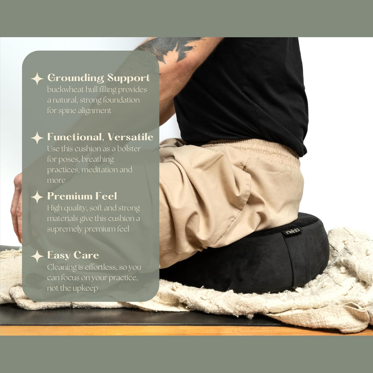 Elevate Your Practice – Designed for comfort and convenience, this meditation cushion features a luxurious velvet cover, natural buckwheat hull filling, and a plush foam insert for optimal support. The hidden zipper allows for easy filling adjustments, while the machine-washable cover keeps it fresh. Perfect for meditation, yoga, and mindful moments.