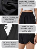 Customers find these running shorts flattering with a shape that enhances leg appearance, and appreciate their comfort, particularly noting the wide waistband and soft material. The high-waisted design sits at the perfect height, making them suitable for both workouts and everyday wear. While some customers praise the material quality and pocket design, others report issues with the material being thin and the pocket placement being backwards. The fit receives mixed feedback, with some finding it nice while others say they run small.