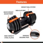 Safety-Enhanced Design: This dumbbell features a locking mechanism designed to ensure weight plates stay in place during use. The locking mechanism allows the handle to be rotated when it is inserted and engaged with the dumbbell base while also locking the dumbbell handle into the base. It also prevents the weight plates from dropping off the dumbbell when it is not in the base and prevents partial selection of the weight plates.