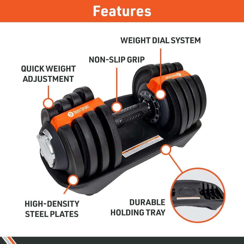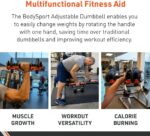 1-Second Weight Adjustment: The BodySport Adjustable Dumbbell enables you to easily change weights by rotating the handle with one hand, saving time over traditional dumbbells and improving workout efficiency.