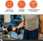 12 Weight Increments and Adjustable: Experience 12 weight settings in one dumbbell, accommodating exercises from novice to advanced levels. The weight increments include 3, 7,13.5. 17, 20, 24, 27, 29, 31, 36 and 40 lb.