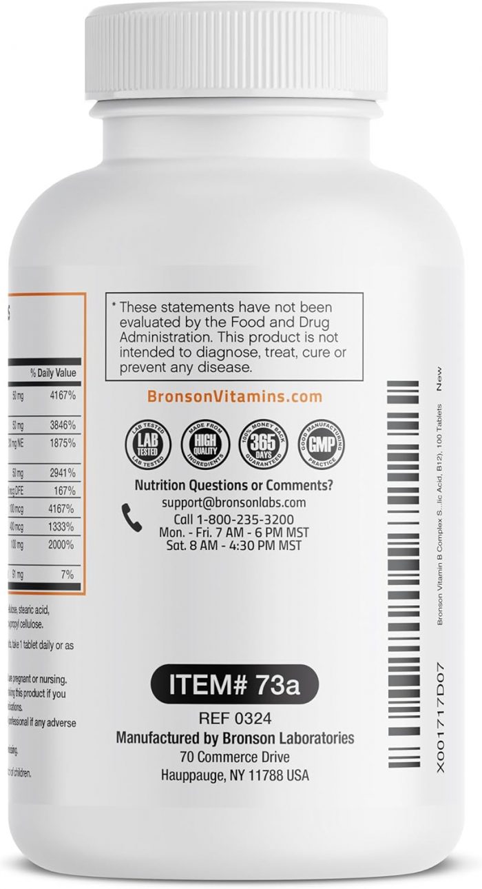 Extra Potent Source of B-Complex Vitamins: Our extra strength formula contains all the essential B Vitamins in just one tablet. If you’d rather take your B Vitamins (like B 12 & 6) together to maximize the benefits, trust Bronson brand! Since 1960 Bronson offers one of the most effective and powerful Vitamin B-Complex formulas available.