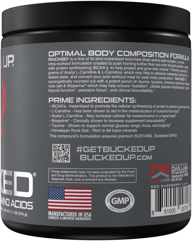SOURCED FROM PLANTS – BCAAs carry around the stigma of tasting horrible. This is because cheaper brands source their BCAAs from Horse hair or Duck feathers. RACKED is sourced from plants which allows for less flavor masking, thus better flavor.