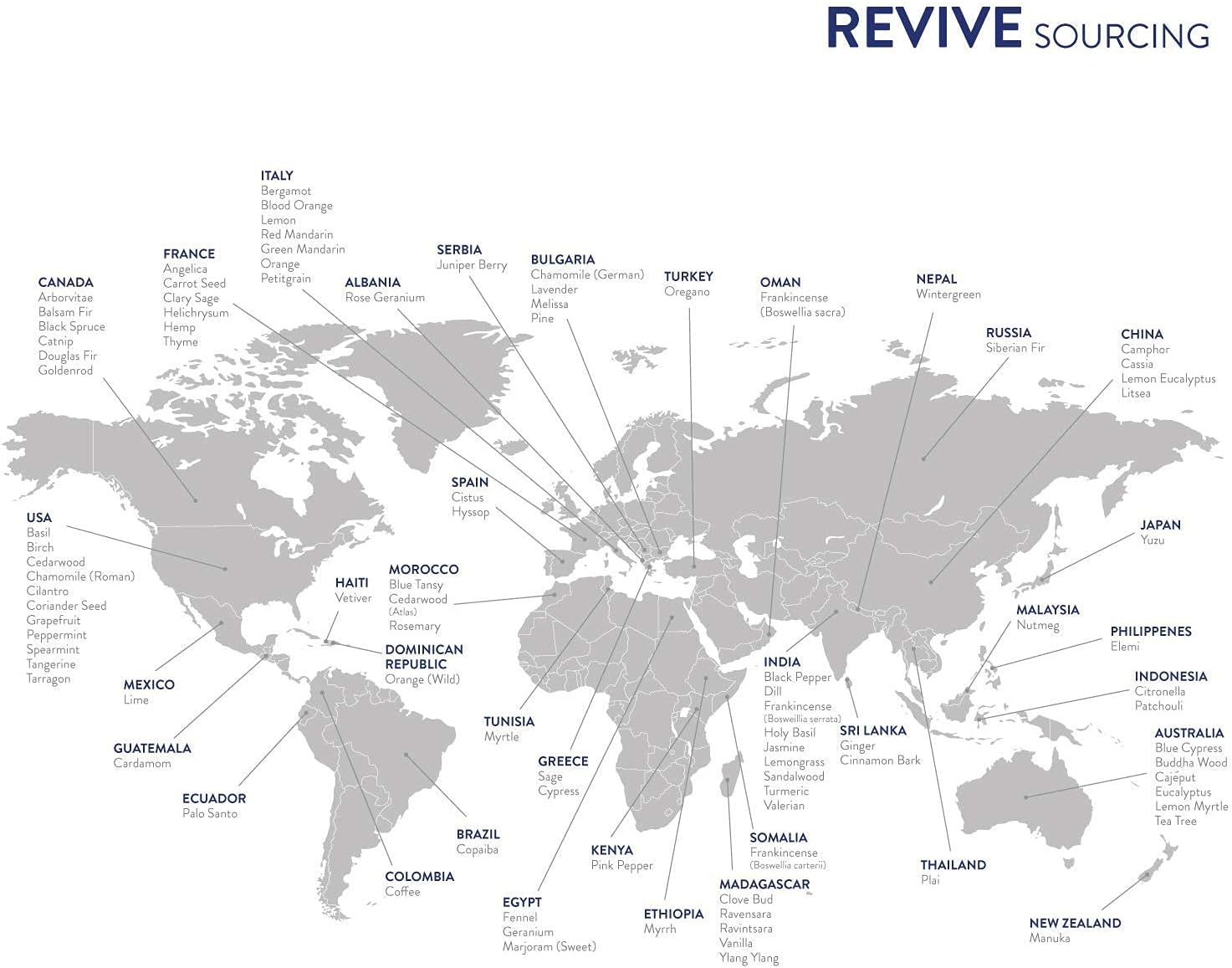 Quality starts with Farms and Sourcing. REVIVE Essential Oils are sourced from around the world, from the specific regions of the world where that species of plant or tree grows best.