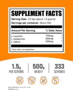 Maximize your Potential: Enhance your active lifestyle with our BCAAs Amino Acids powder, with 3:1:2 ratio of Isoleucine, Leucine and Valine, designed to support your strength and performance goals. Each serving delivers a substantial 1.5g dose, catering to both fitness enthusiasts looking to push their limits.