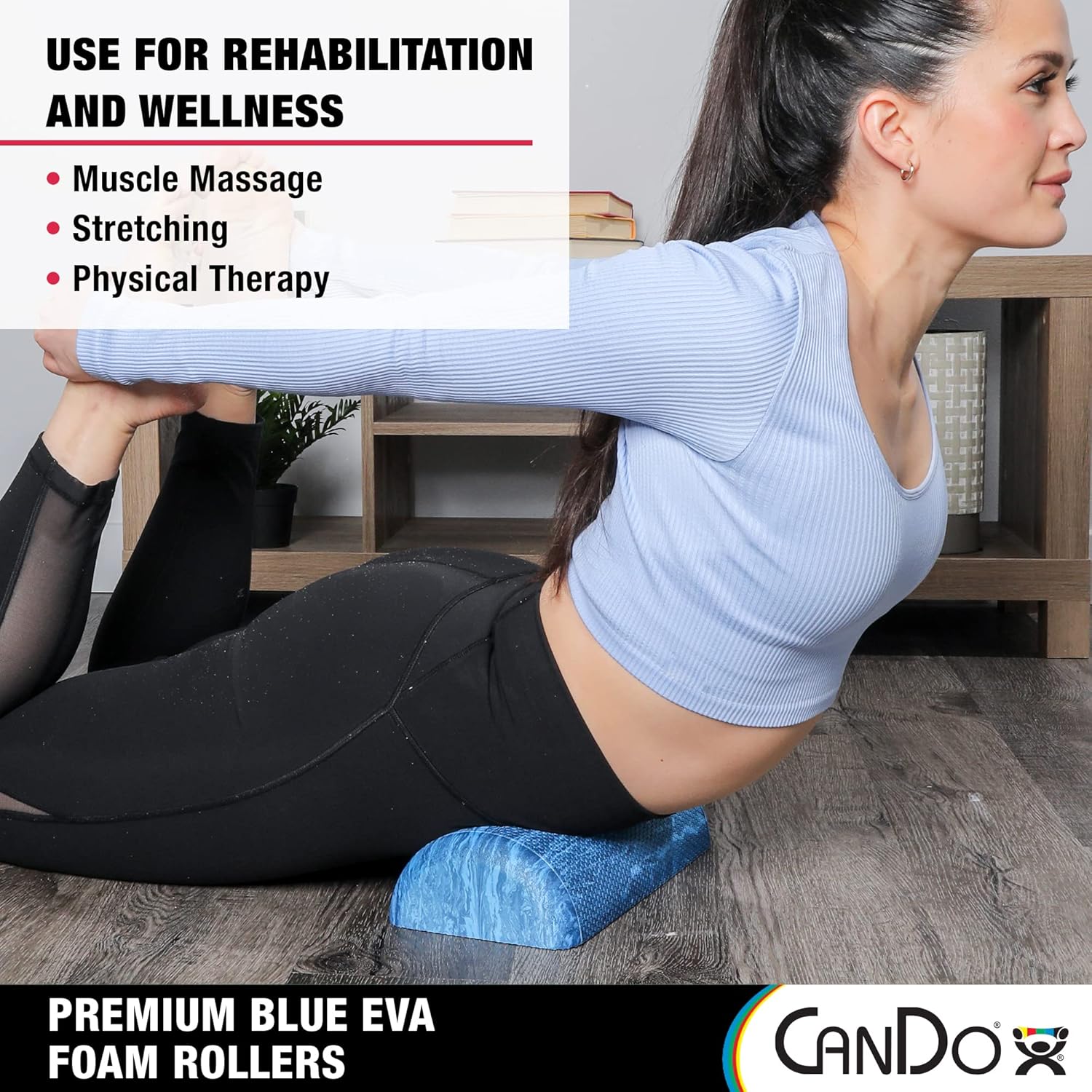 The CanDo Blue Marble High Density EVA Half Round Foam Roller is the right choice for muscle restoration, massage therapy, sport recovery and physical therapy. This roller is great for increasing blood flow and improving blood circulation as well as for stretching and rehabilitating hips, legs (thighs, knees, calves, ankles) back, neck and shoulders. It’s ideal for a deep tissue massage after an intensive workout to gain needed relief and enable myofascial release. The foam provides durability for long-term use. It is the perfect tool to work on improving your positioning, balance, posture, spinal stabilization, body awareness and coordination. It’s an excellent resource following intensive workouts like crossfit, yoga, Pilates, weight training, bodybuilding and even dance. If the roller looks familiar, it’s because they are found in clinics, gyms and PT offices nationwide. This roller is your own massage therapist as it works wonders on loosening and unknotting tight muscles while restoring flexibility. The unique and durable design means the rollers don’t flake or shed. So versatile, this roller can be used by adults and children as well as beginners and professional athletes.