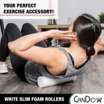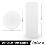 The CanDo Polyethylene White Foam Rollers are available in 48″, 36″, 30″, 24″, 18″ and 12″ lengths and 3″, 4″, 6″ or 8″ diameters with either a round (circular) or half-round (semi-circular) profile. The 6″ diameter version is most popular among users, while the shorter length versions are ideal for homes and small clinics. Its extruded polyethylene 2.0 lb density provides a moderate firmness. The foam is strong enough to be used by large adults and active children. These rollers are perfect for all body types from beginners, to professional athletes. They can be used alone or with other exercisers such as CanDo exercise bands, tubing, weights and balls. Choose the roller that is right for you!