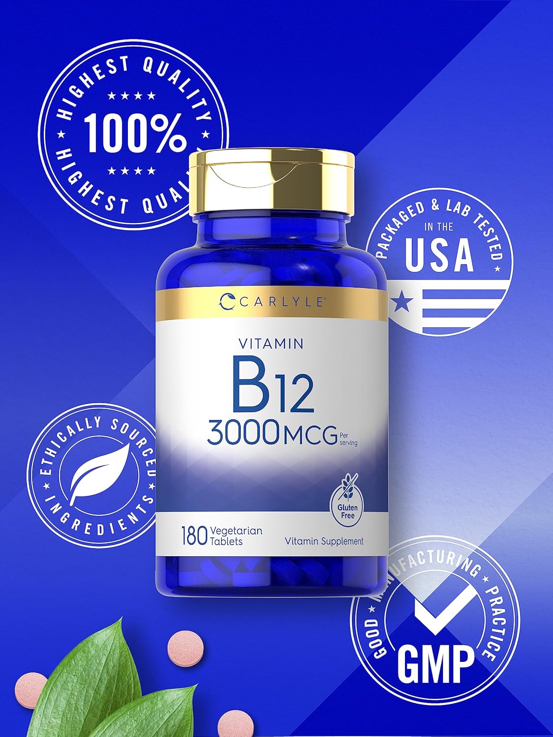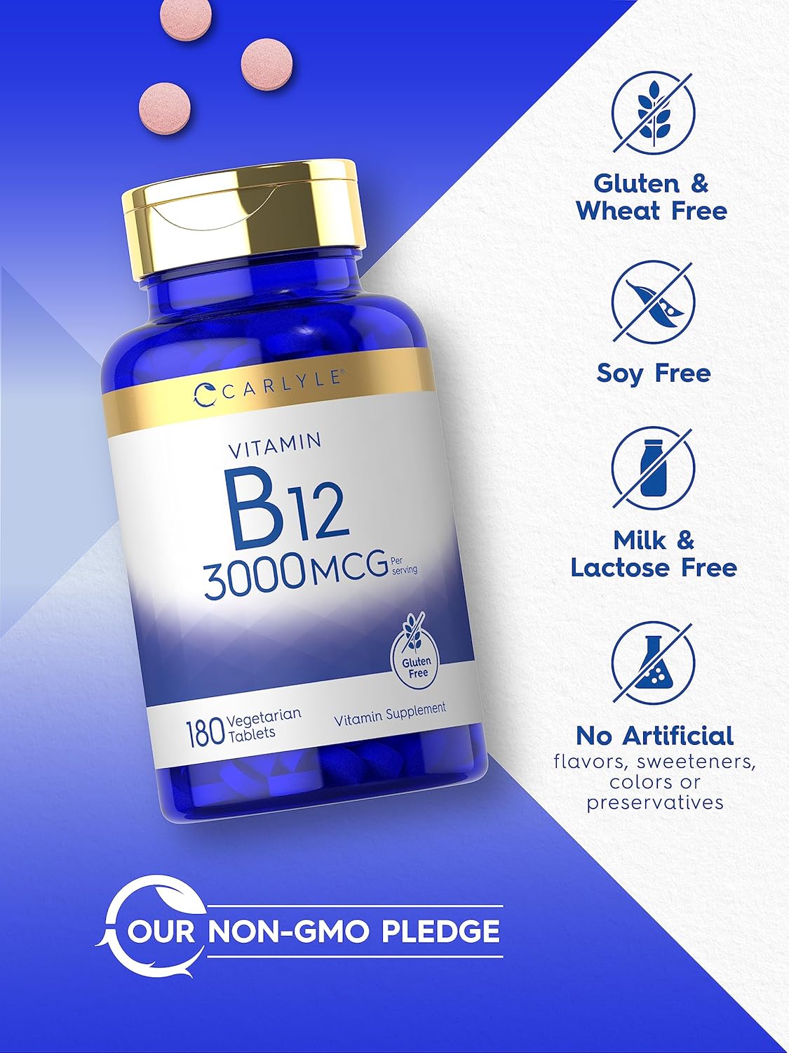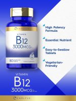 VEGETARIAN FORMULA: Vegetarian tablets provide 3,000 mcg of Vitamin B12 per serving